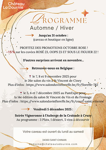 NOS ÉVÈNEMENTS ET DÉGUSTATIONS : AUTOMNE 2025